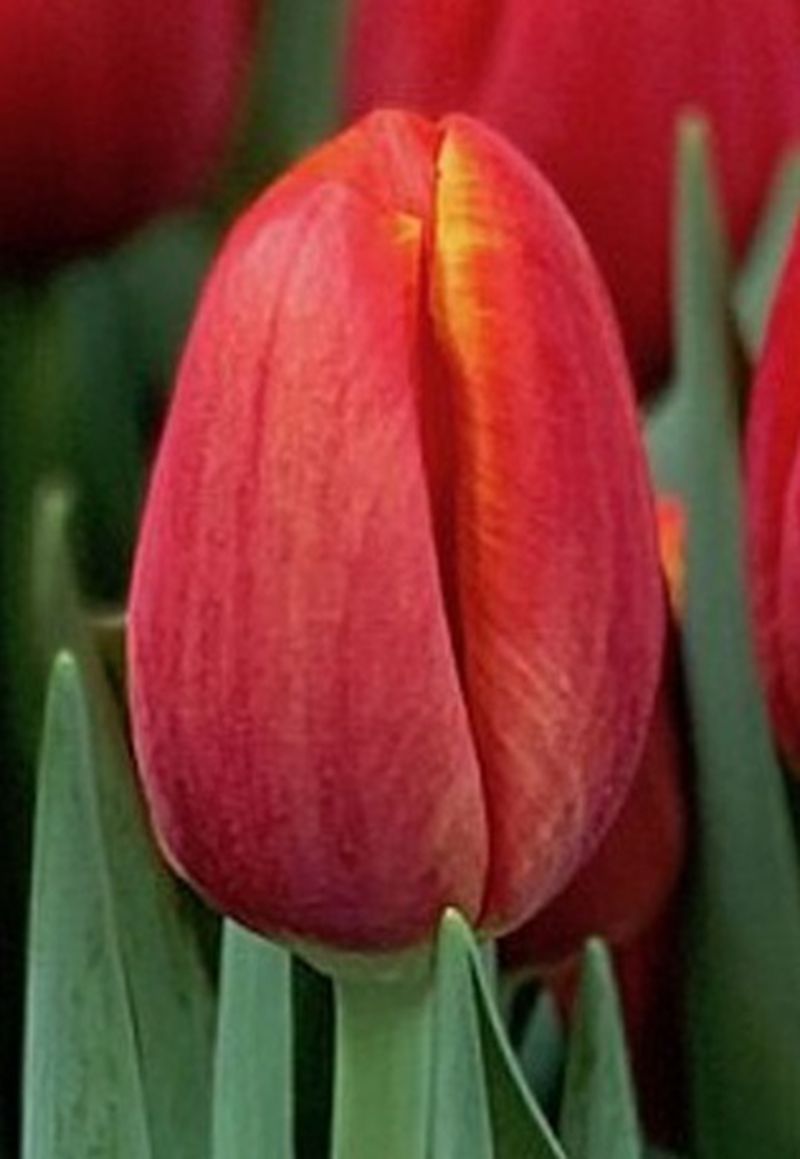 Двухцветный бокал с желтой каймой, которая проявляется по мере созревания цветка, пышность листвы средняя.